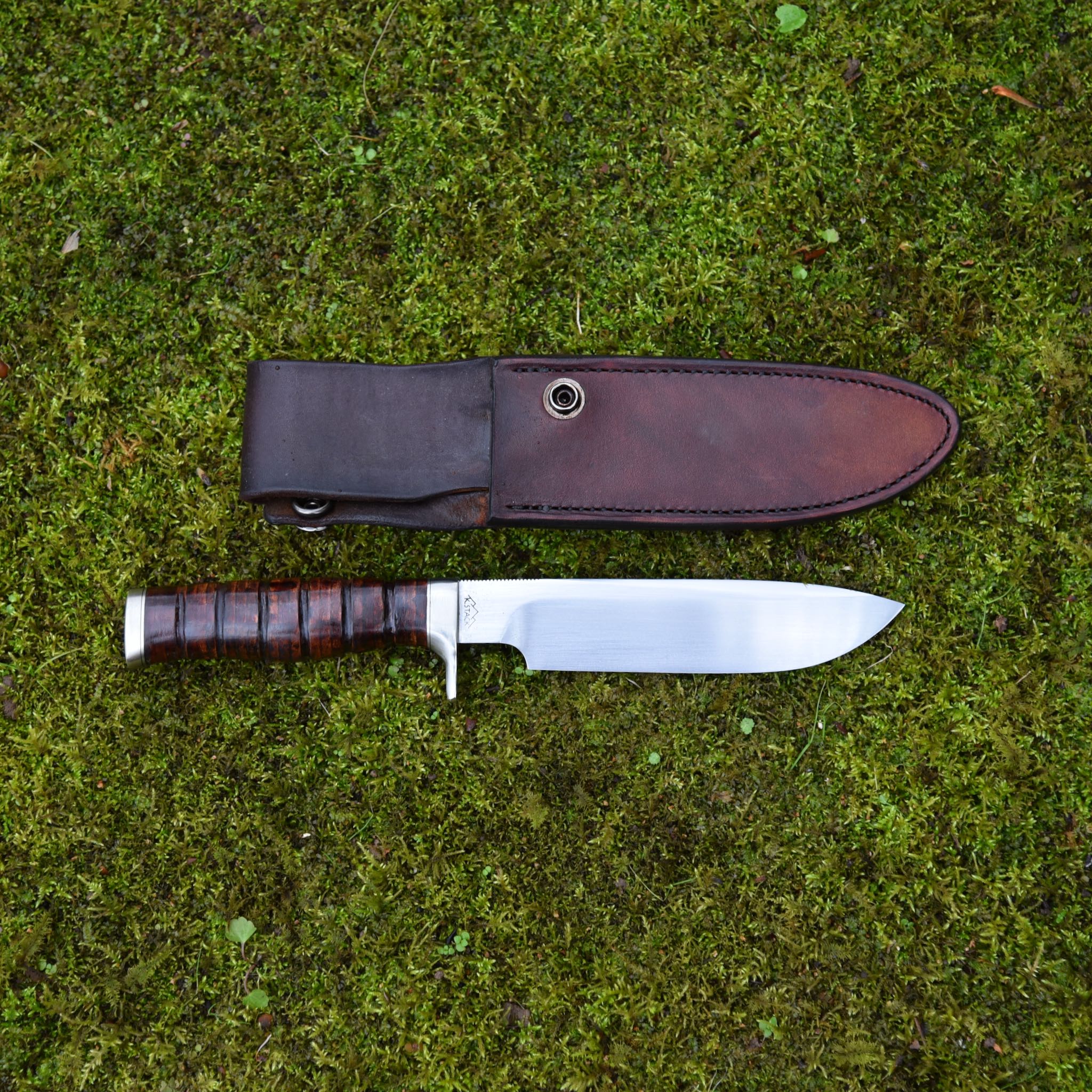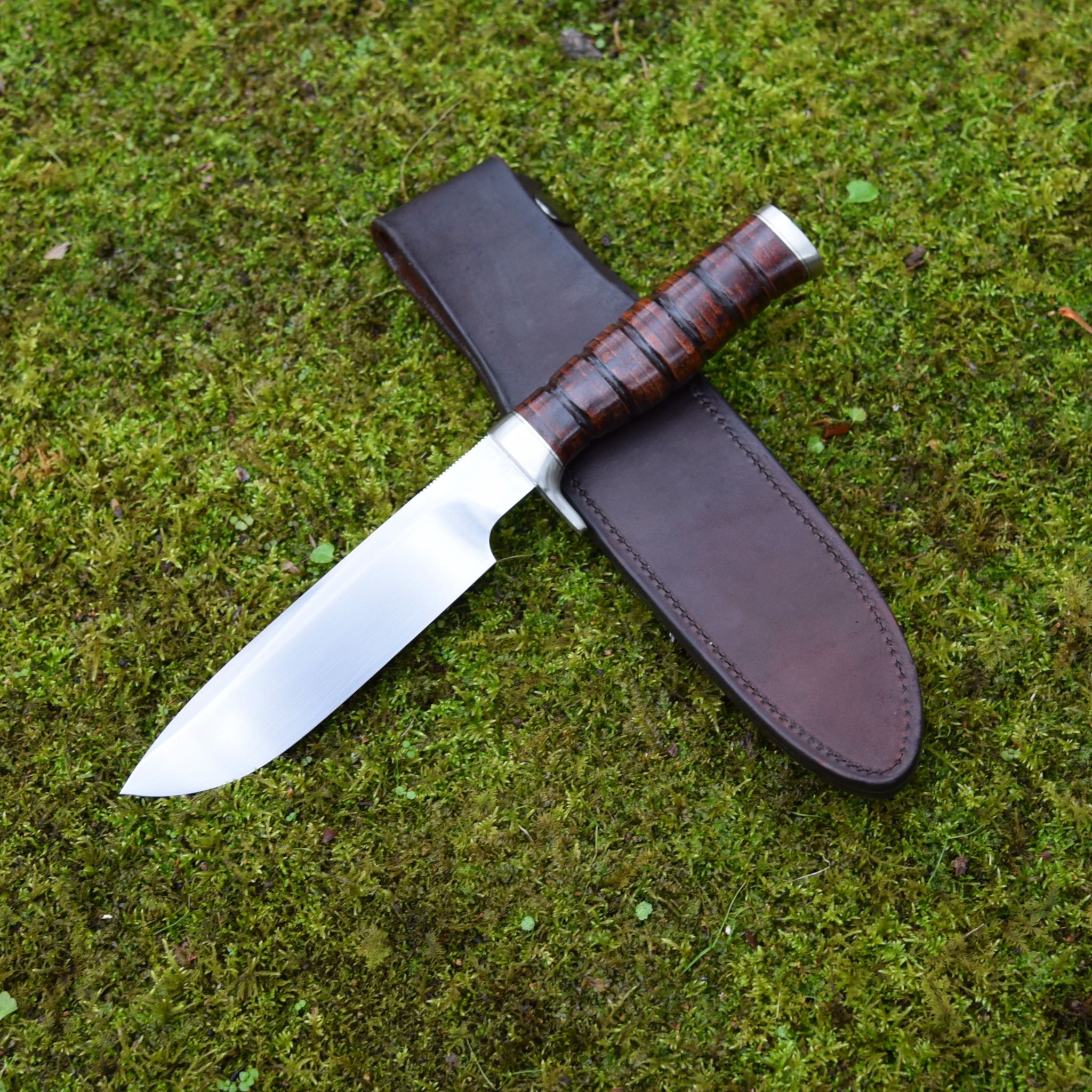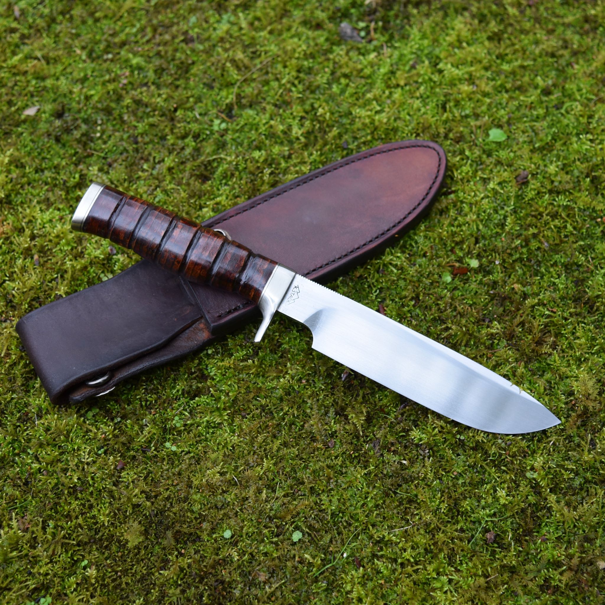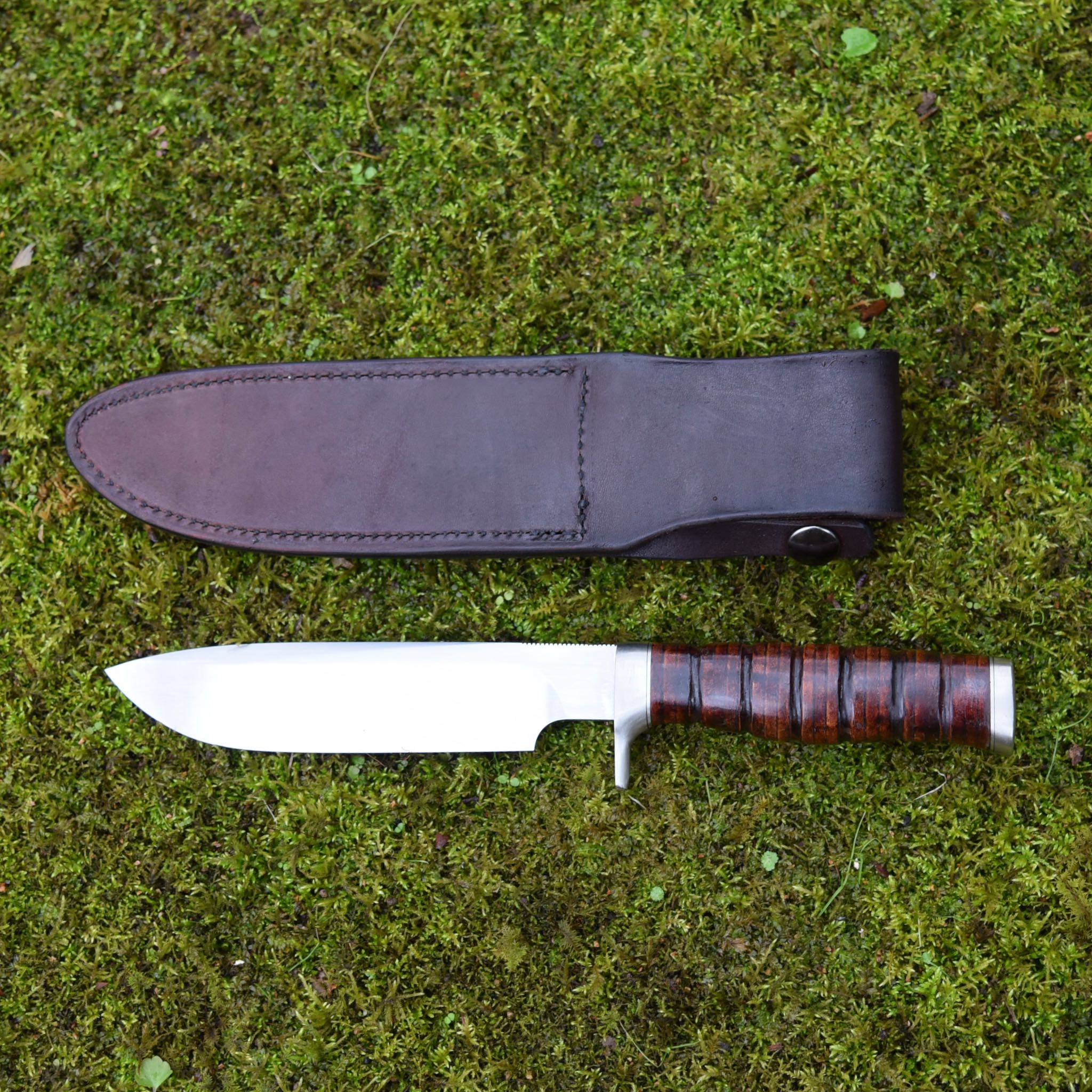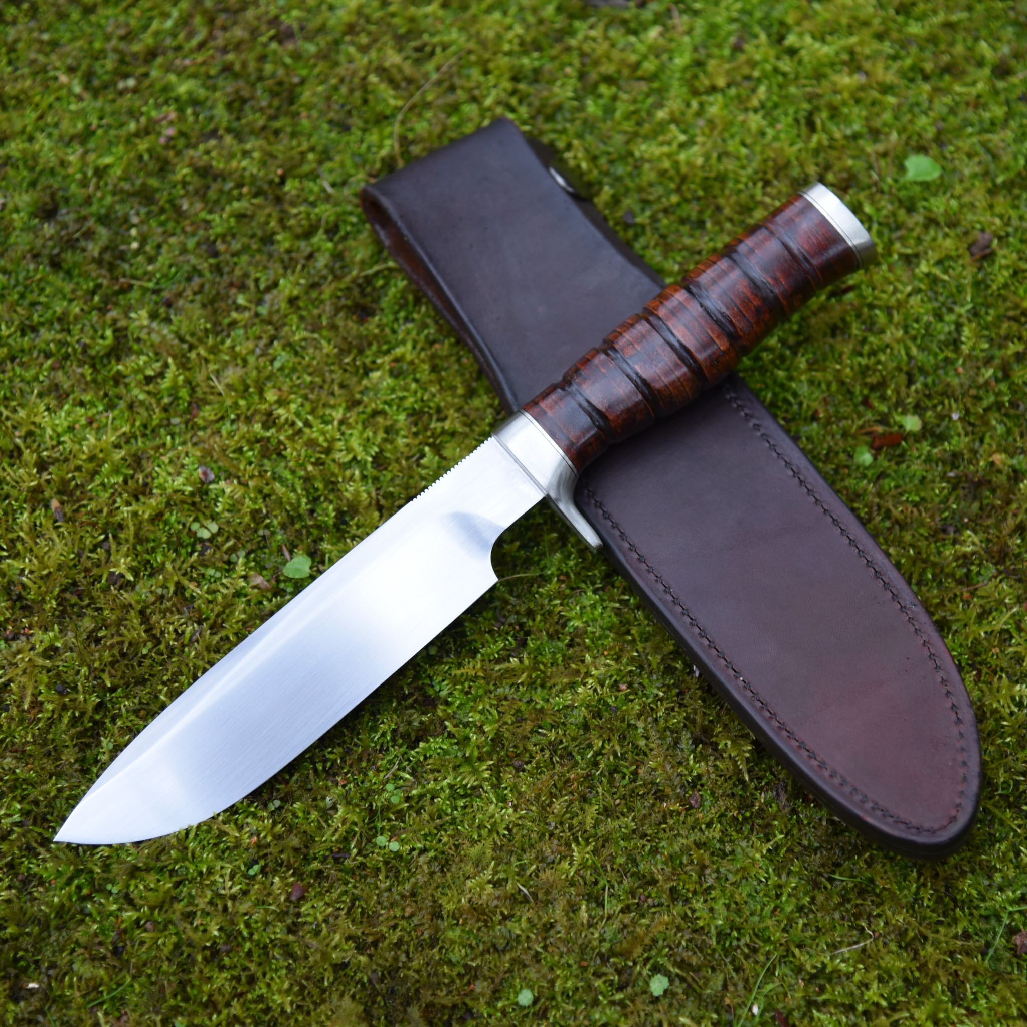 Handle: Stacked Leather with nickel silver guard and butt cap.