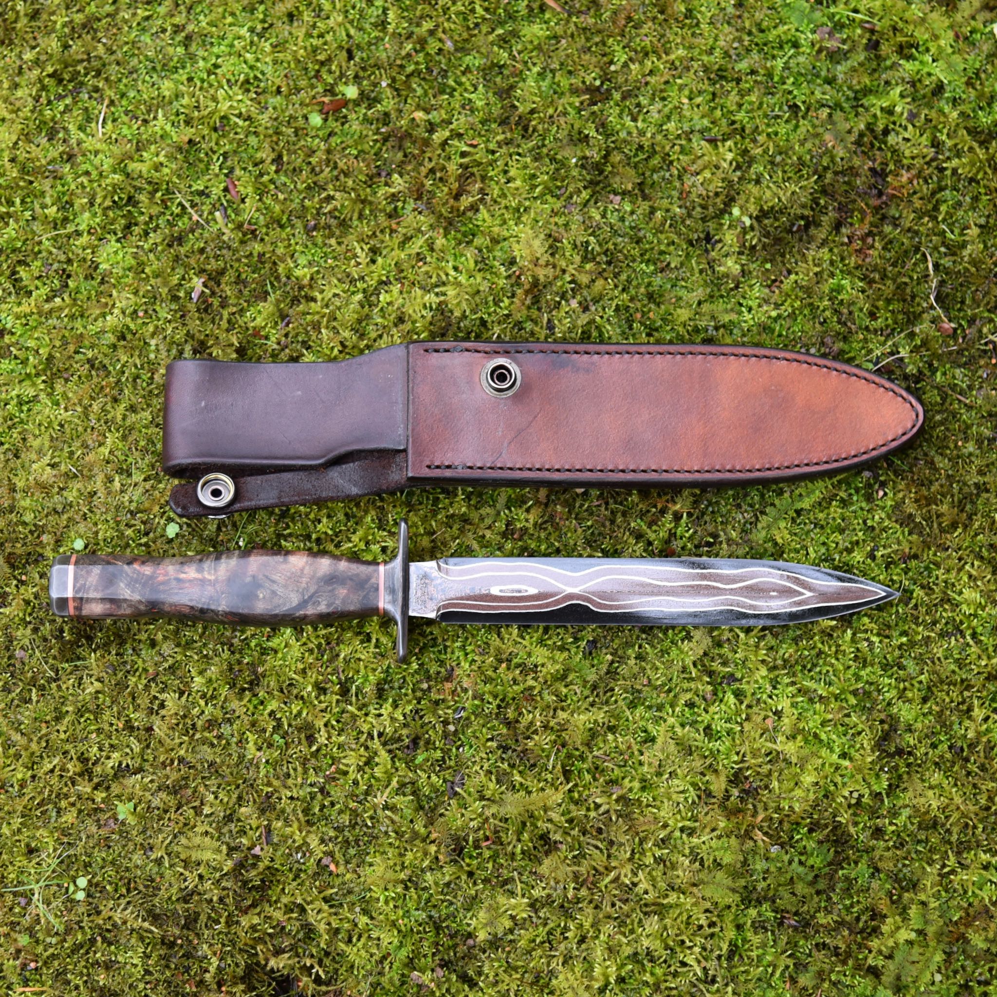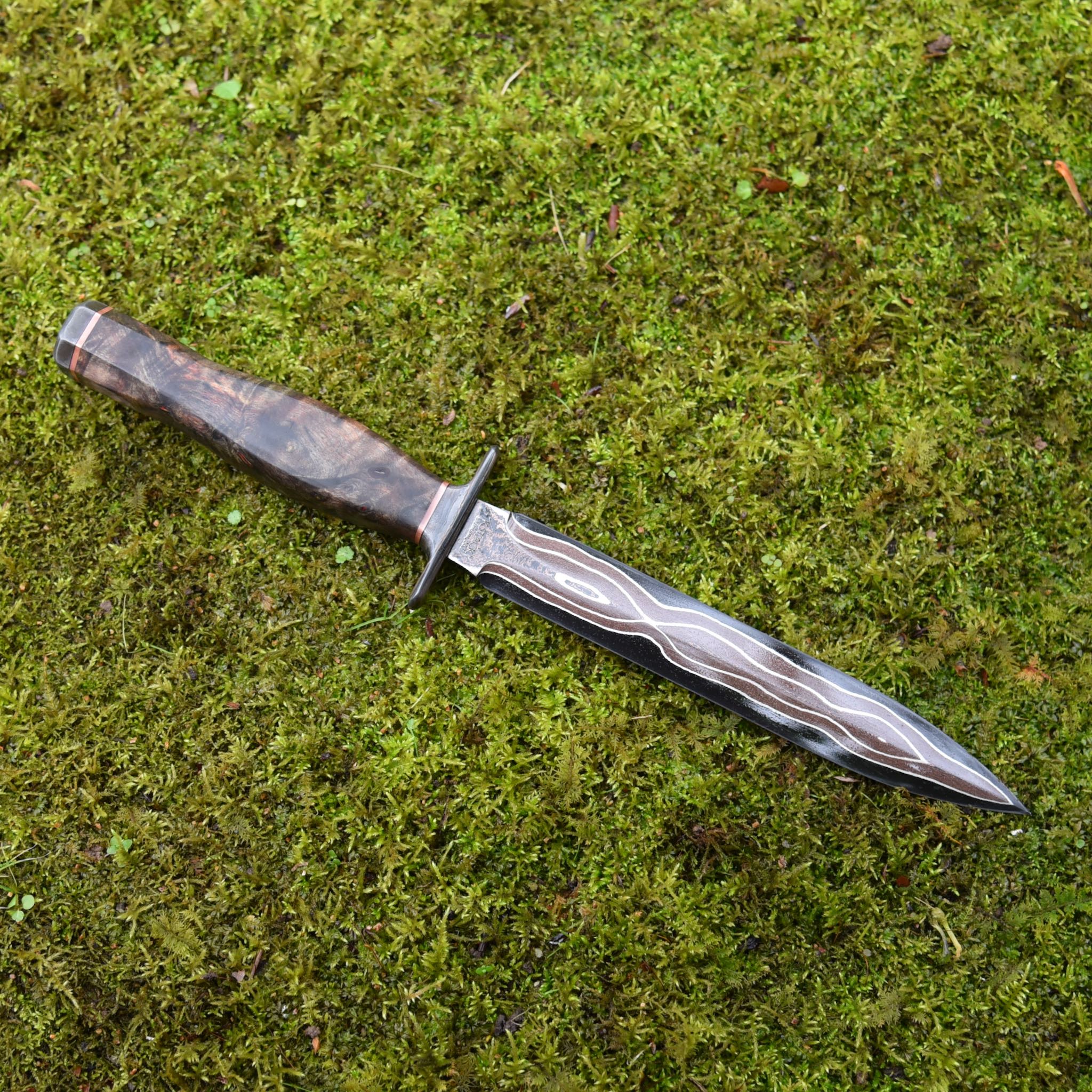 Dagger with Box Elder Burl, Baker Forge Tsunami (Cu/Ni)